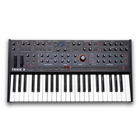 Sequential Take 5 – 44-клавішний поліфонічний синтезатор з 5-голосною архітектурою, 2 аналоговими осциляторами на голос, субосцилятором, генератором шуму, hard sync, секцією мікшера, 1 багаторежимним аналоговим фільтром на голос, 1 цифровим високочастотним фільтром на голос та секцією ефектів.